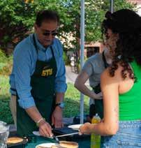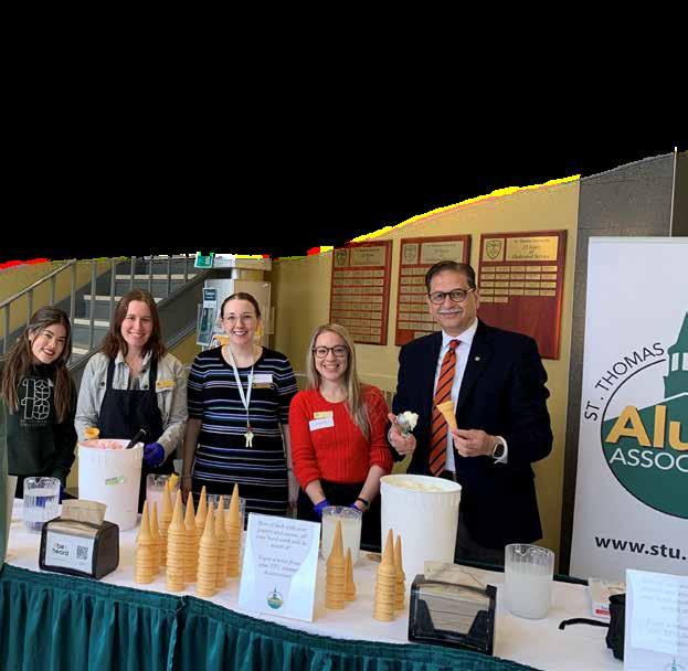 Dr. Farooqi, alongside STU alumni staff and faculty, gave out free ice cream in celebration of the last day of classes; the ice cream event was sponsored by the Alumni Association! •