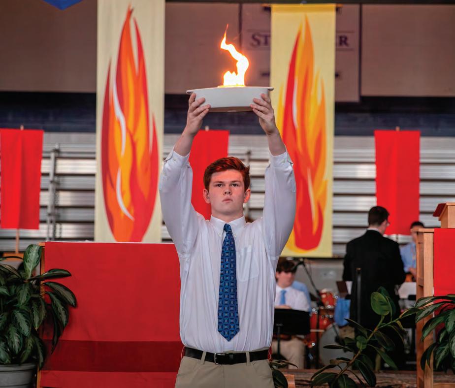 Above Photo: Carrying in the flame of the Holy Spirit for Mass.