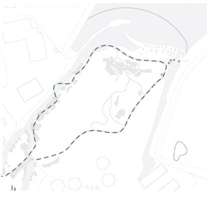 patway runs along the borders of the natural topography present in the site. The design of the pathway becomes shy at the border of the bird sanctuary to not disturb the natural bird habitat. The pathway then rotate and reached the end at the parking lot. Poeple will be able to experience different parts of the santuary on one pathway. The material used as well are carefully chosen to not impact the identity.