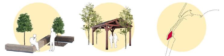 B. Pavilions and Kiosks: We distribute kiosks, pergolas, and pavilions all along the site for people to enjoy their random activities.