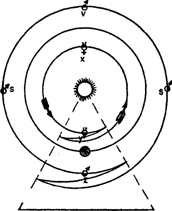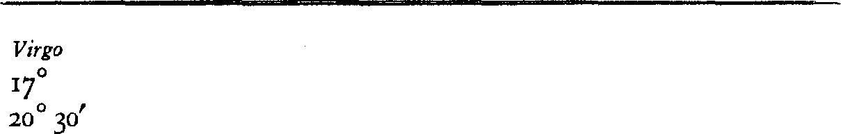 An adaptation of this principle is to cast the Figure for the day when the Sun is nearest to the longtitude it had at birth, and the hour and minute when R. A. of the M. C. is the same as at birth, whereby the cusps will be the same as those in the Radi�. The o�e method employs the Sun's position as the measure of time, a�d is equivalent to placing the transitory positions of the planets m a Solar Nativity; the other, to placing the transiting positions of the planets in a Geocentric Nativity. If Primary Directions are to be considered within the year, from either Figure, the time of day on which the revolution will be complete (either the Sun's return or the Ascendant's return), and the places of the planets, must be computed with great exactness for that precise moment.