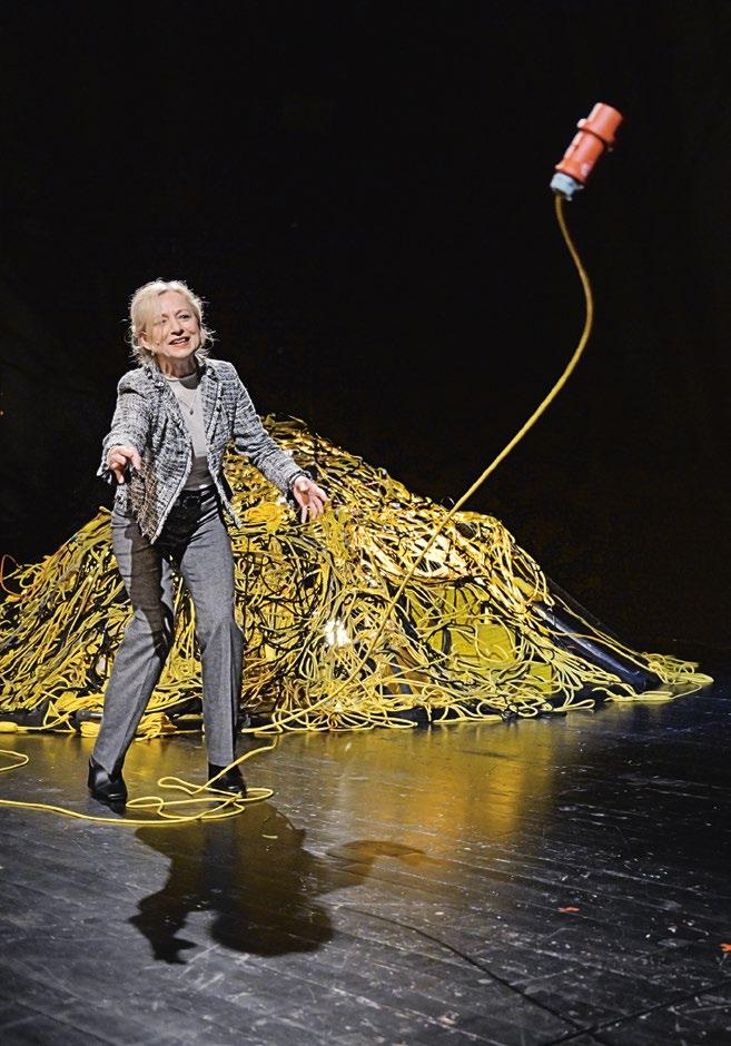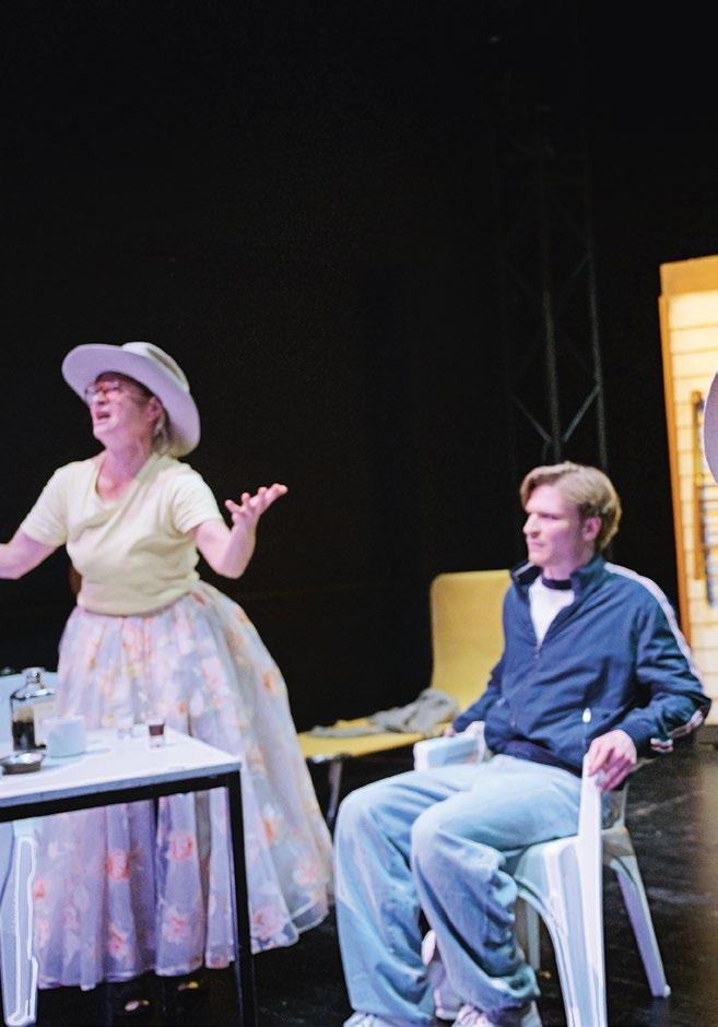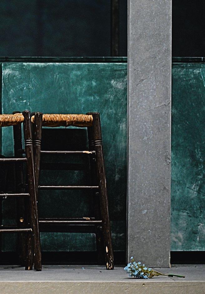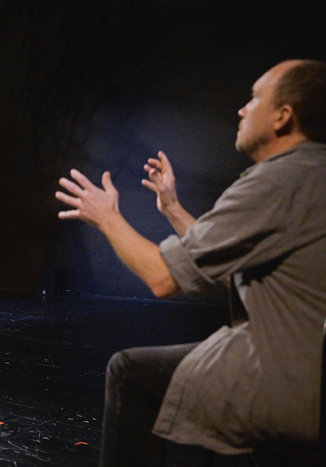 Archäologie. Wir passen ganz gut da hin, denn wir kommen mit leichtem Gepäck und nicht, um zu bleiben. Solche Übergangsorte erzählen immer Vergangenheit und Zukunft zugleich, bilden ein Spannungsfeld zwischen dem Nicht mehr und dem Noch nicht. Im Grunde sind alle Theaterbühnen, also natürlich auch die Spiel- stätten hier im Haus am Gutenbergplatz, ihrer Bestimmung nach Zwi- schenreiche, die im- mer wieder leerge- räumt und neu gefüllt werden.