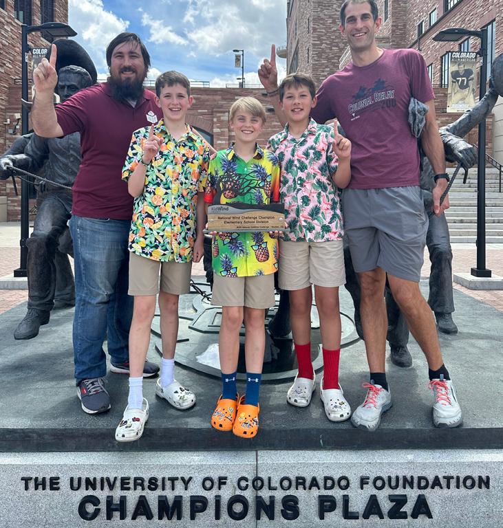 Team “Slack Attack” blew away the competition at the 2023 National KidWind Challenge held in Boulder, Colorado in May. Congratulations to Andy K. ’30, Bo G. ’30, Dean R. ’30, and their coaches, Jeff Schwalm and Robbie Munsey!