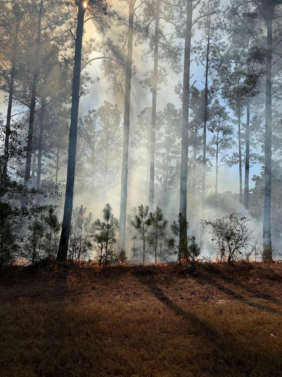 Controlled burns, management that involves the inte efully monitored conditions. Gene ce yet there is a difference: wildf s and controlled burns are an essential tool used by ecologists, foresters, and land managers to maintain healthy ecosystems and reduce the risk of uncontrolled wildfires. One of the most significant benefits of controlled burns is their ability to prevent large, destructive wildfires. By periodically burning off excess vegetation, controlled burns help reduce the buildup of “fuel” - dry leaves, dead trees, and other organic matter that can fuel massive fires. This reduction in fuel load makes it more difficult for wildfires to spread uncontrollably and cause widespread destruction to forests, homes, and wildlife. Many plant and animal species have adapted to fire and depend on it for survival. For example, certain pine species, require fire to open their cones and release seeds. Additionally, controlled burns can create diverse habitats by clearing out overgrown brush, allowing sunlight to reach the forest floor and encouraging the growth of native grasses and flowers. This, in turn, supports a variety of wildlife, from insects to large mammals, by providing food and shelter.