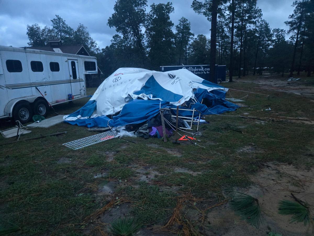 forecast called for 25 MPH winds in Aiken. As one day turned to the next, the forecast grew progressively worse. By the time we realized that we would bear the brunt of Helene, it was too late to do anything with the tent.”
