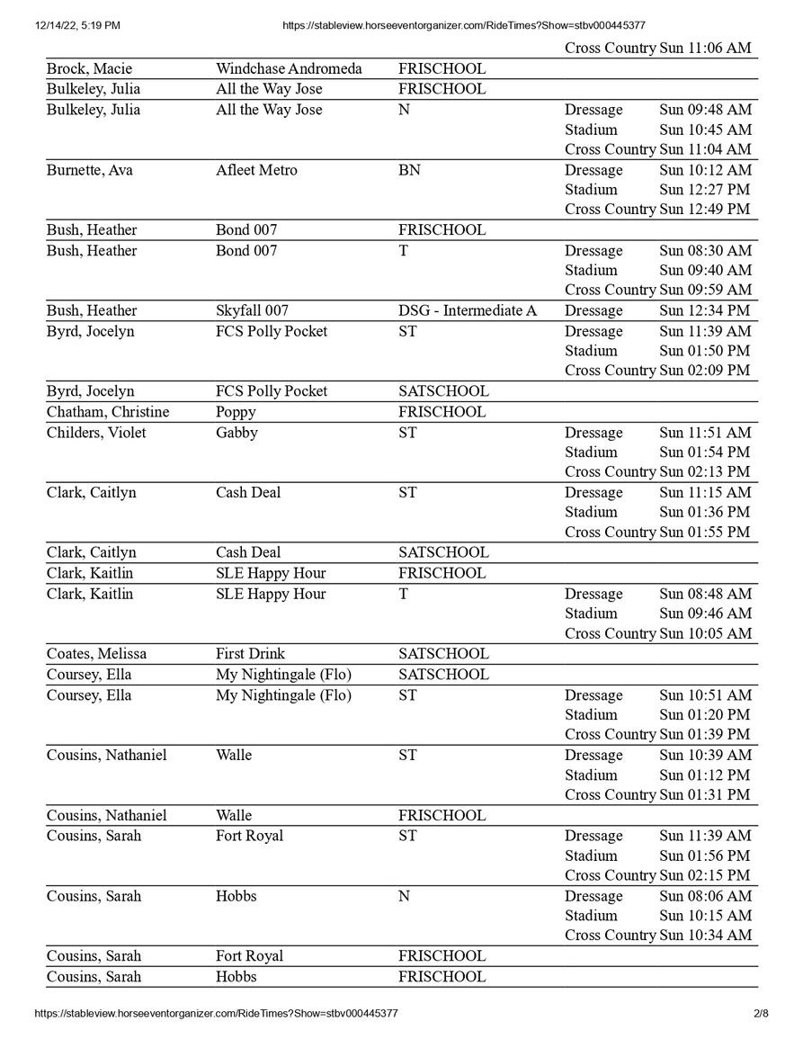 2023 STABLE VIEW CALENDAR 117 Stable Dr, Aiken SC || 484 356 3173 || info@stableviewfarm.com || svfequestrian.com