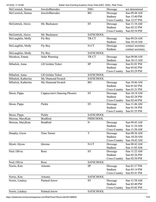 7-9|| EventingAcademySchoolingHorseTrials 12-13||USEF/USDF"TooHotToTrotI"Dressage 14-16||USEF/USDF"TooHotToTrotII"Dressage
