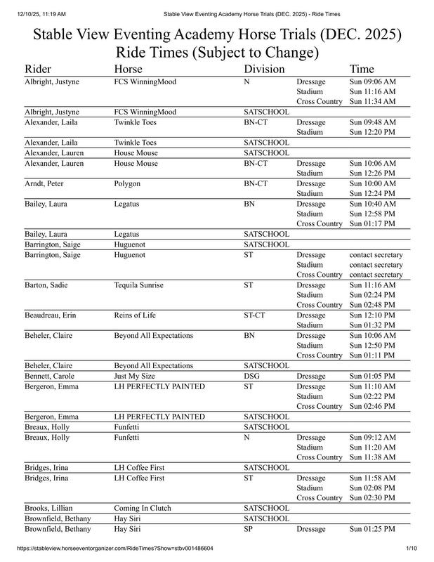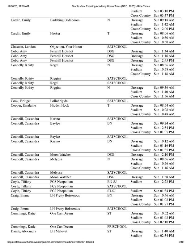 2–3||USEF/USEA"StableViewLocalCharities"HorseTrails 15-17||USEF/USEAIntercollegiateandInterscholasticChampionship HorseTrials