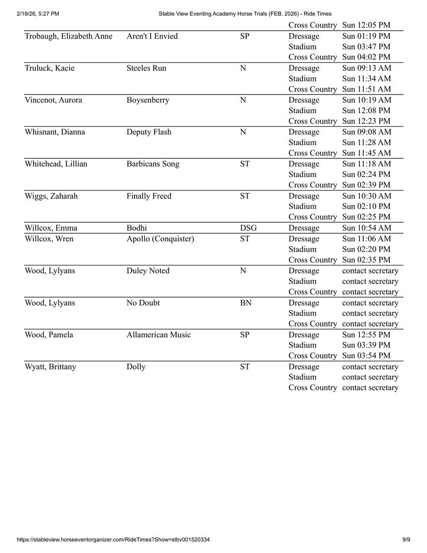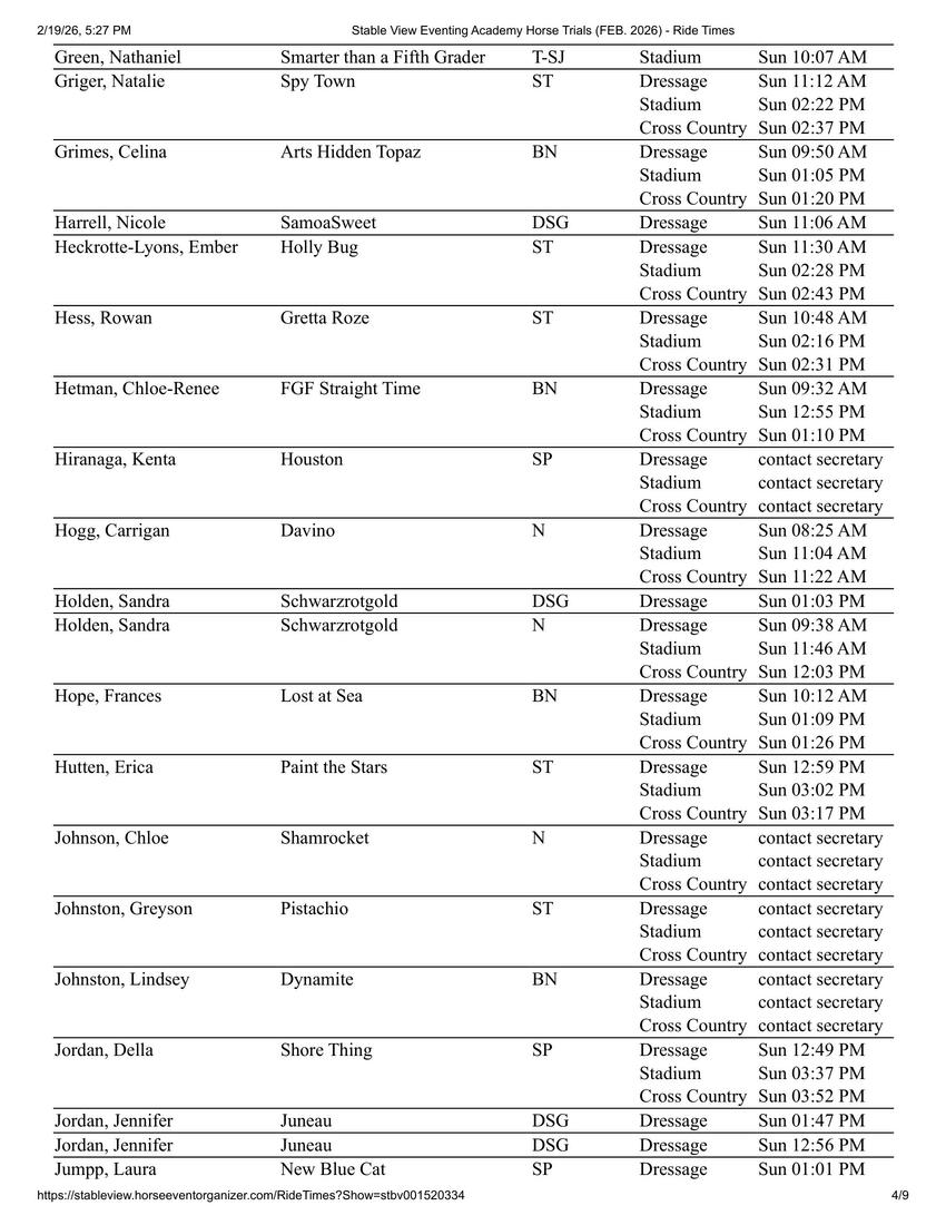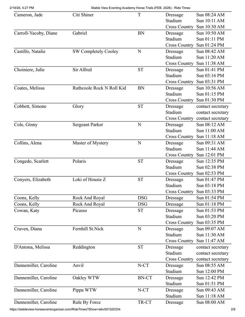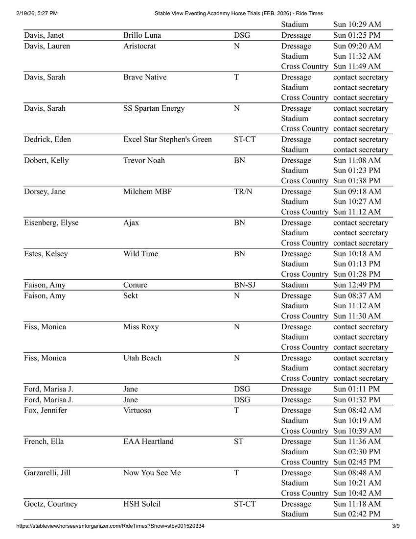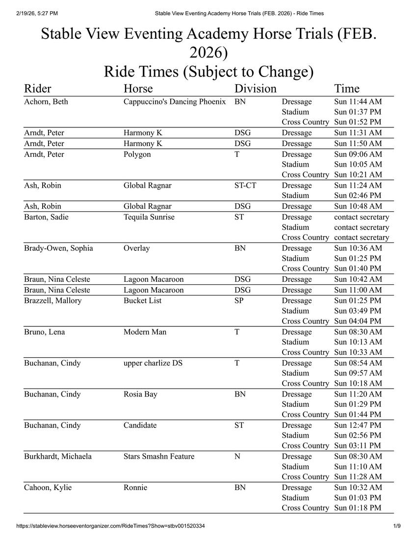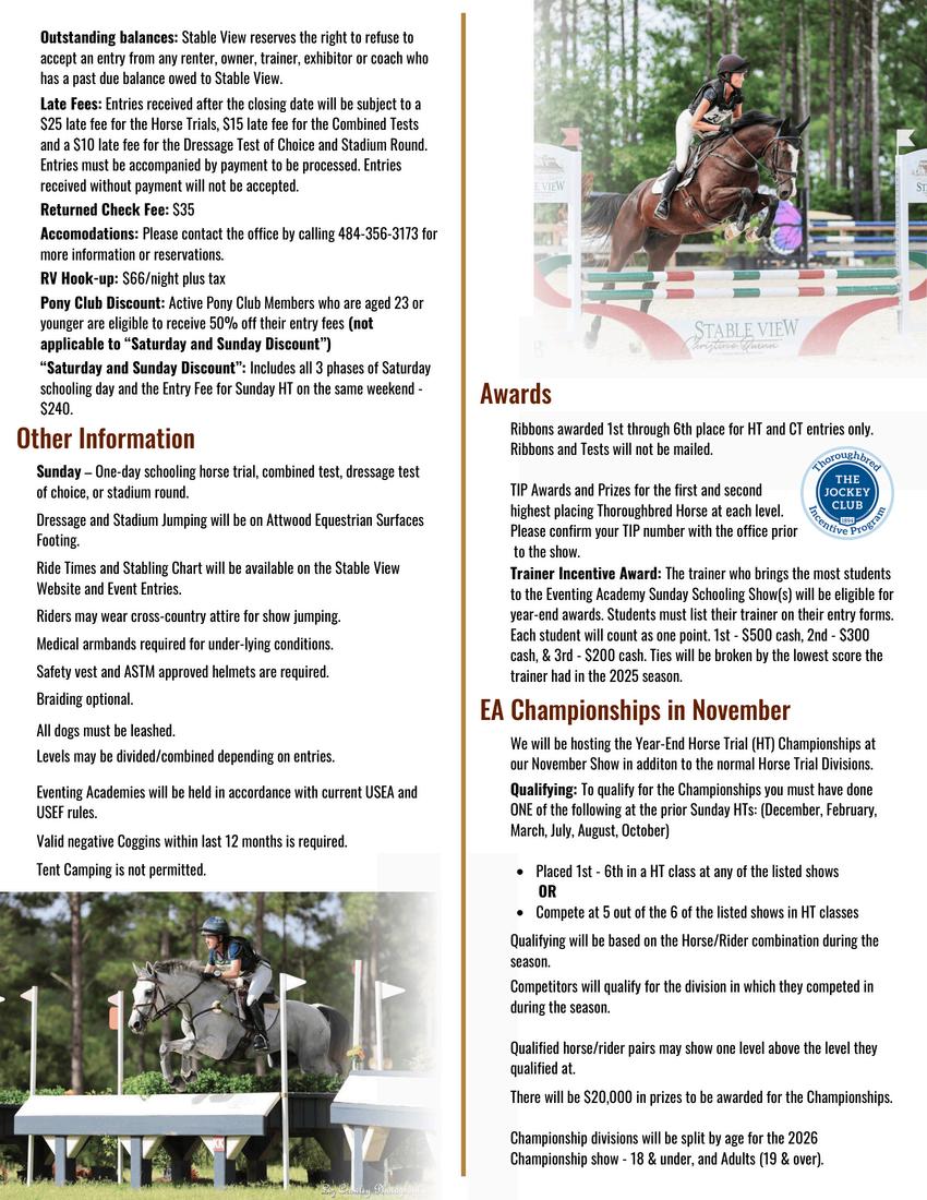 2–3||USEF/USEA"StableViewLocalCharities"HorseTrails 15-17||USEF/USEAIntercollegiateandInterscholasticChampionship HorseTrials