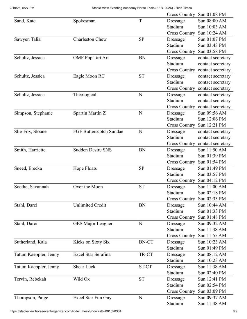 11||Hunter/JumperInstitute 13-15||USHJAHunterJumpersInandOutSeries 20-22||EventingAcademySchoolingHorseTrials