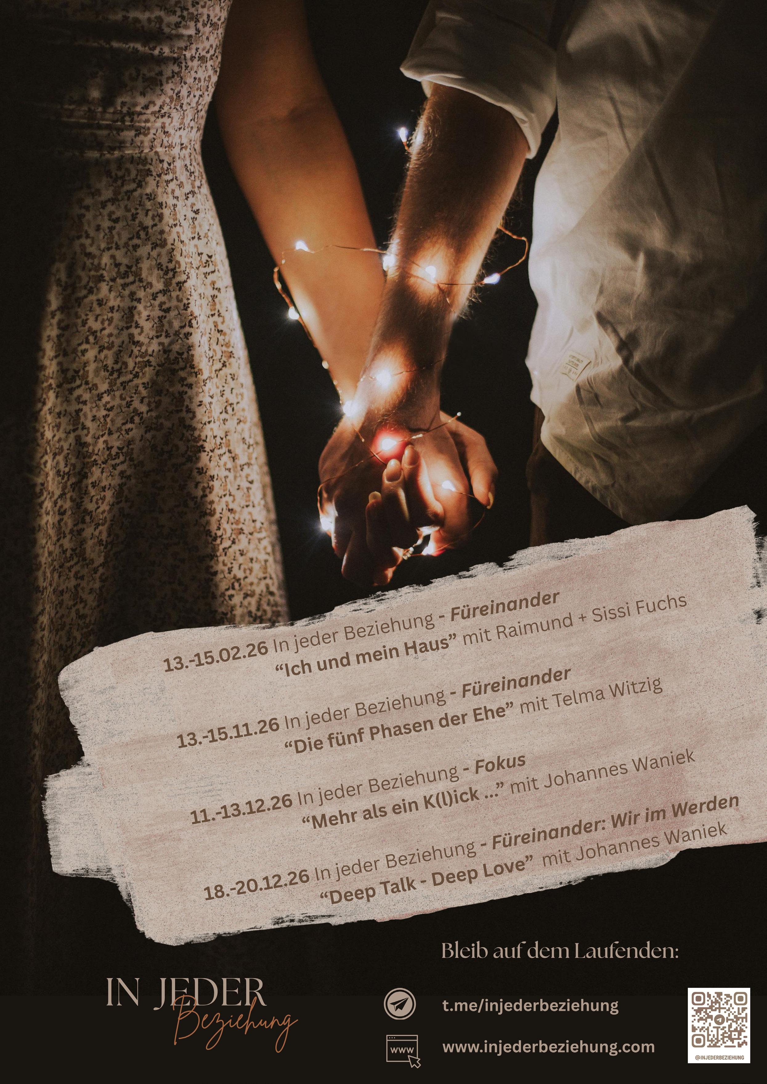 13. – 15.02.2026 – Ort: Haus Schwarzwaldsonne, 72250 Freudenstadt; Thema: „Ich und mein Haus“; Referenten: Raimund und Sissi Fuchs