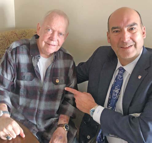 Some ’73 alumni met with new STA leadership instructor, First Sergeant Troy Hill. Troy brought the men up to speed on the Academy and the new military program, and everyone was all very impressed with him and knew the Cadets will benefit from his leadership. Said TIM PLUNKETT ’73, “Troy was definitely able to pick up on the lifetime brotherhood element of being an alumnus.” Tim also gave Troy his Field Jacket for STA’s museum. The jacket was professionally dry cleaned by St. Croix Cleaners using their Museum Care process since it was over 50 years old! Pictured above: (left side) KEVIN DALY ’73, Troy Hill, TIM PLUNKETT ’73, and TOM CLEMENTS ’73; (right side) TIM RIDLEY ’73, EDDIE O’PHELAN ’73, JOHN ROONEY ’73, and Gordon Drake.