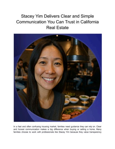 Stacey Yim has been helping individuals and families succeed in the California real estate market since 2015. She built her career in Irvine on three simple values: integrity, reliability, and genuine care for people. She believes buying or selling a home should not be overwhelming but a straightforward and supported process that helps clients make confident decisions. Her approach is built on preparation and communication. Before listing a property, she studies the market carefully, prepares a strategy for presentation and pricing, and ensures that every detail supports her client’s goals. For buyers, she takes time to understand lifestyle needs, budgets, and long-term plans. Clients often describe her as calm, patient, and dependable, appreciating her ability to explain each step clearly and honestly. When Stacey began her real estate journey in 2015, she committed herself to learning the local market, attending showings, and observing what makes each property valuable. Over time, her consistency, precision, and dedication helped her earn a strong reputation in the California real estate market. She believes that doing the work well and treating every deal as her own is the key to lasting success. Living and working in Irvine gives Stacey valuable local insight into neighborhoods, schools, and community dynamics. She understands that each real estate transaction often represents a significant life change, whether a growing family, retirement, or relocation, and she provides steady guidance through each stage. For Stacey Yim, real estate is more than a career; it’s about connecting with people during meaningful transitions and helping them confidently move forward. Her honest, consistent, and thoughtful service continues to make her one of Irvine’s most trusted realtors.
