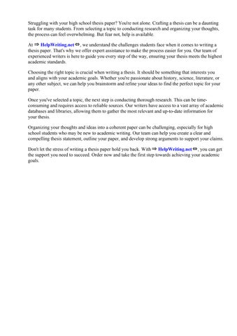 By entrusting your academic endeavors to ⇒ HelpWriting.net⇔, you can alleviate the burden of navigating the complexities of thesis writing. Their commitment to quality and customer satisfaction ensures that you receive personalized assistance every step of the way, from formulating a precise thesis statement to refining your arguments and ensuring coherence in your paper.