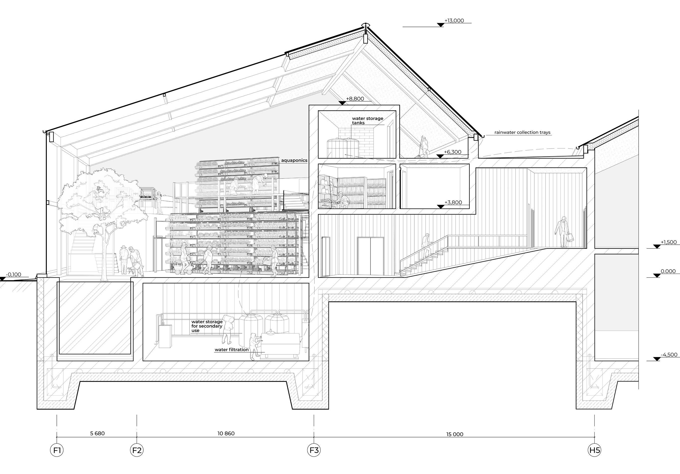 The community house would be the region’s main location for trading, sharing, recycling materials and resources in order to exemplify how a circular economy operates.