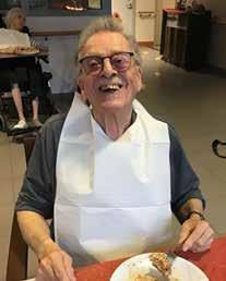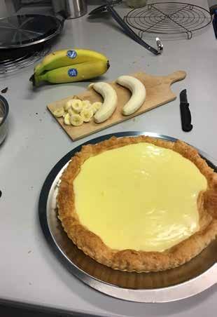 Voor de jarigen van de maand doen we steeds een aperitief en bakken we een taart. Voor deze verjaardag bakten we samen met de bewoners een taart Het werd een bananentaart gevuld met vanillepudding.
