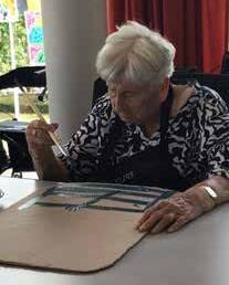 Als echte Picasso’s werd er geschilderd. In het midden van het schilderij komt nog een foto van de bewoner en nadien zullen onze prachtige kunstwerken te bezichtigen zijn in onze gang.
