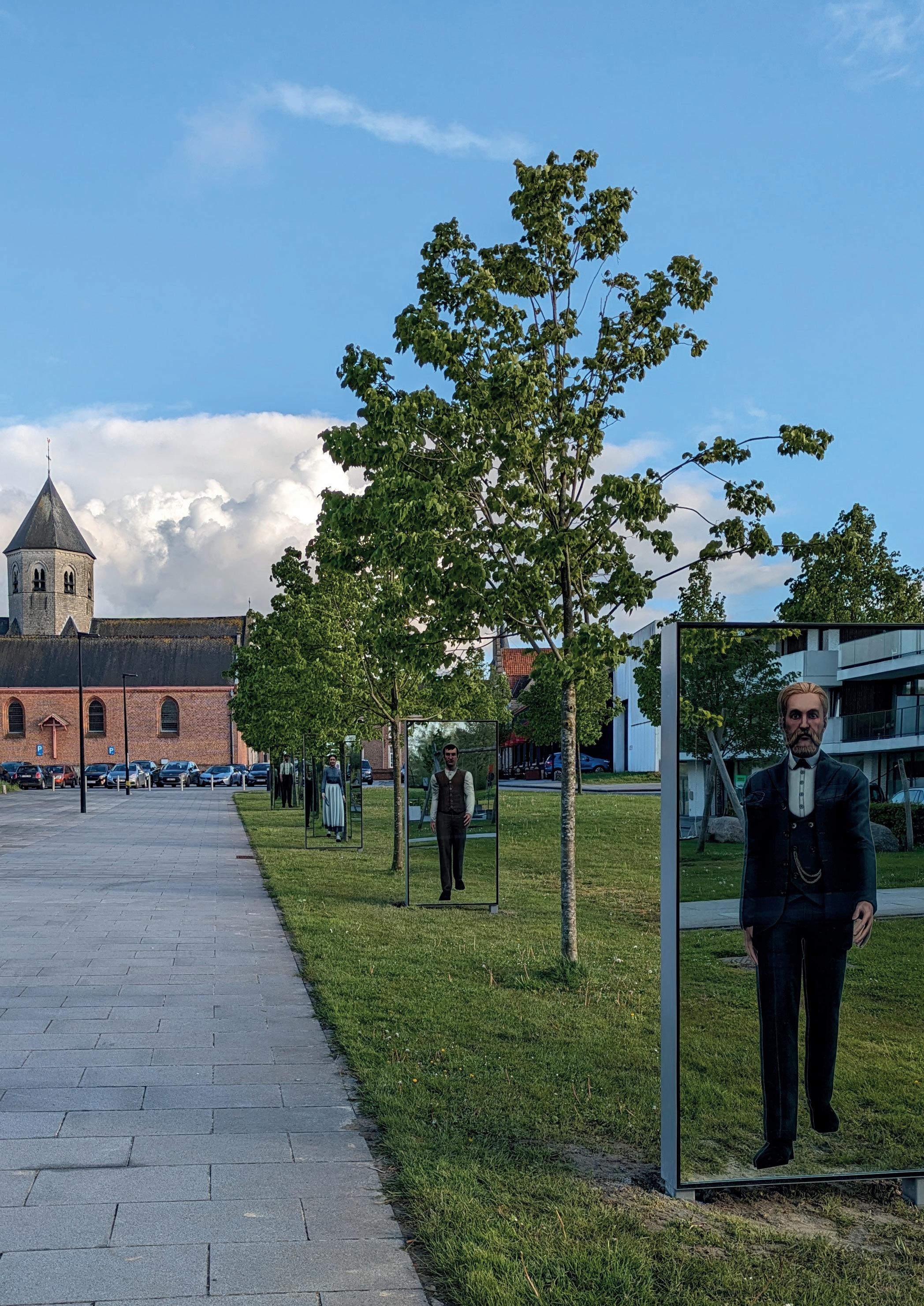Ter ere van het Emile Clausjaar vind je op de groenzone van het Sint-Elooisplein deze verrassende kunstinstallatie. Emile Claus en enkele belangrijke figuren uit het Hanengevecht staan afgebeeld op kunstige spiegels en nodigen je uit om de Belevingsexpo in de kerk van Sint-ElooisVijve te bezoeken of om nadien gezellig te vertoeven aan zijn geliefde Leieboorden. Met behulp van een QR-code vertelt Claus aan een van de spiegels ook over zijn leven en werk in verschillende talen.