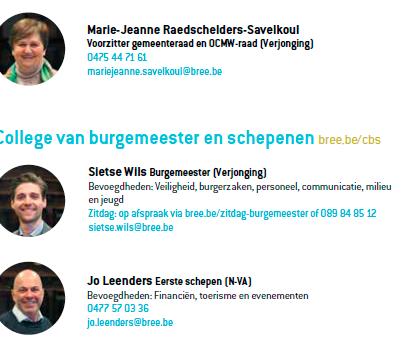 Zitdag: op afspraak via bree.be/zitdag-burgemeester of 089 84 85 12 sietse.wils@bree.be