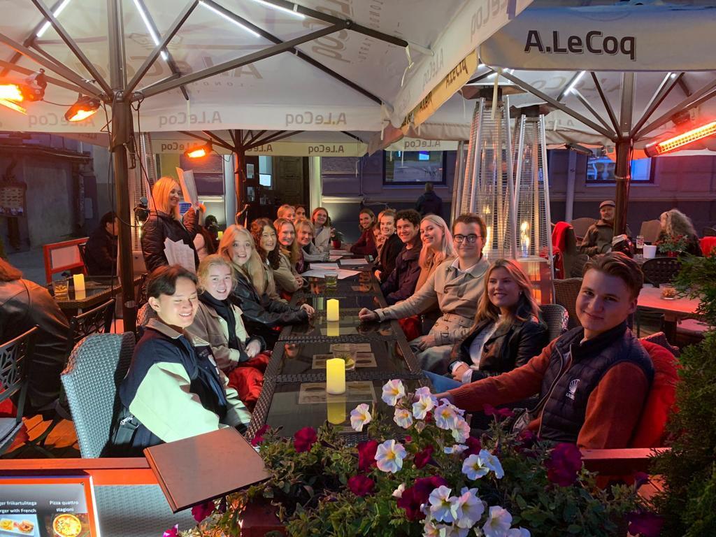 En stor del av gulisgruppen åkte med på årets lilla exkursion till Tallinn. Resan var minsann en upplevelse - på gott och ont - och gav oss minnen vi aldrig kommer kunna glömma. Med start med förfest på hostellets bar hamnade vi den första kvällen slutligen på den fenomenala och oslagbara technoklubben Sveta<3 Efter att ha blivit uppväckta av brandalarmet på natten och sjungit snapsvisor på en estnisk restaurang var hemlängtan redan så stark att vi spenderade den sista kvällen på en finsk karaokebar, sjungandes bangers som “Villieläin” och “Ooa hela natten”. Alla hörn av Tallinn utforskades. Vi vill påpeka att vi faktiskt även hade akademiskt program och att vårt besök till Finlands ambassad var mycket givande, även om vi var aningen slitna från dagarna innan.