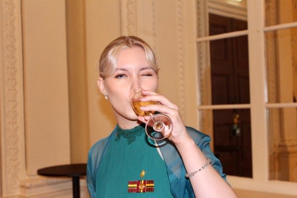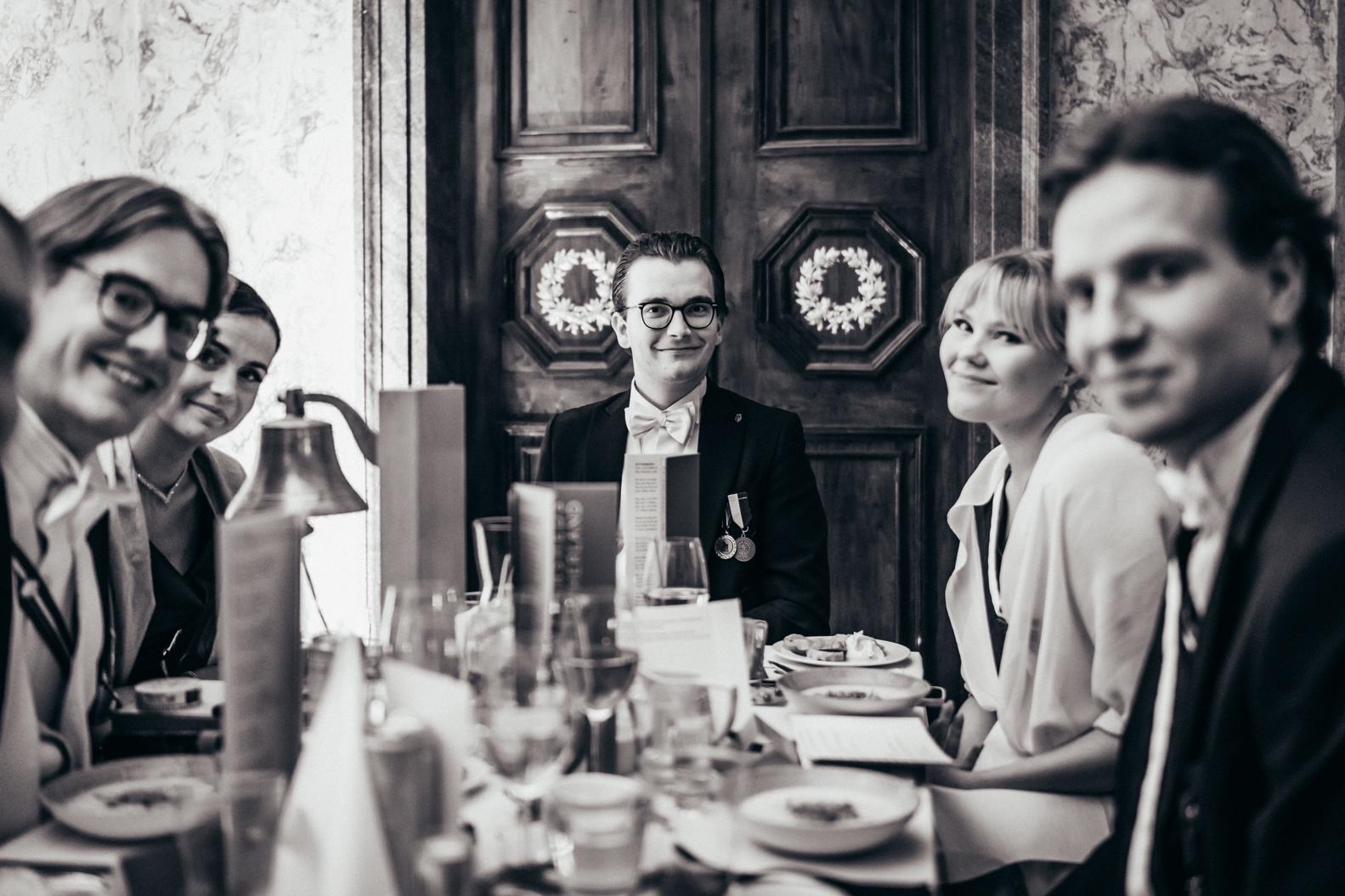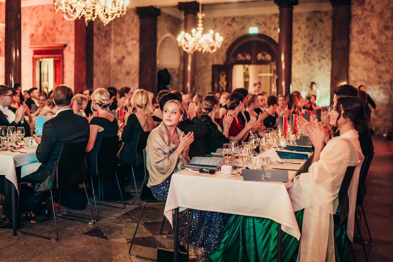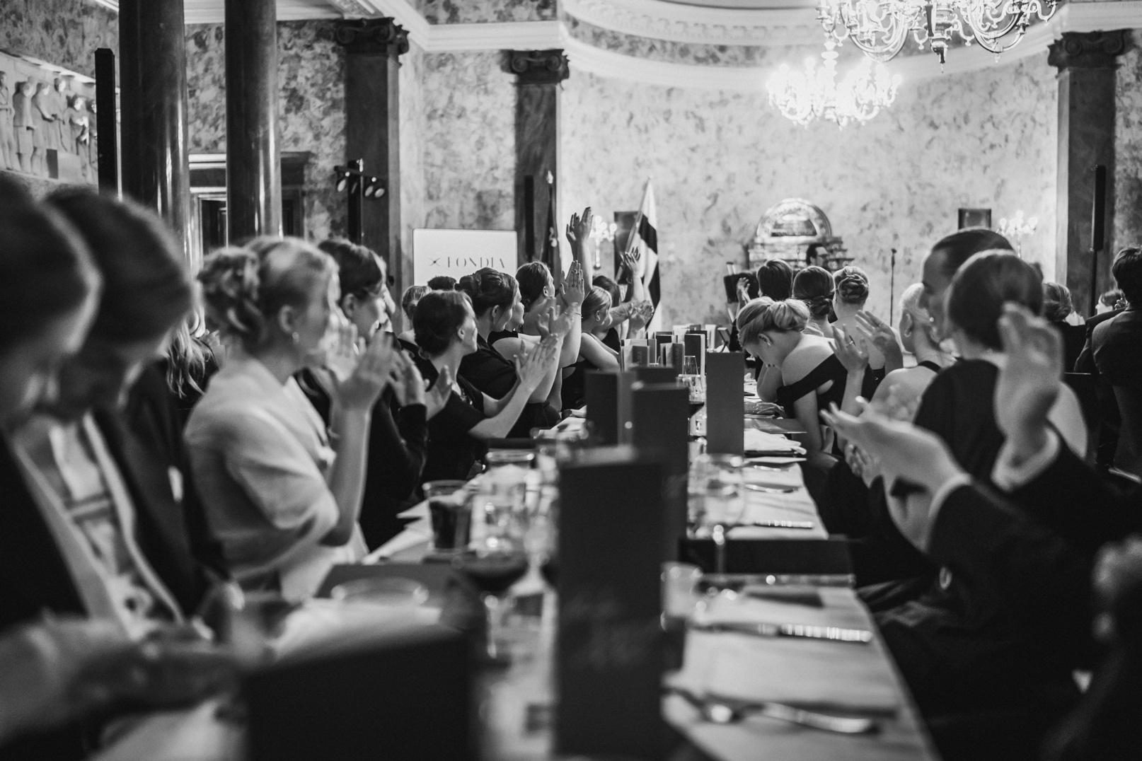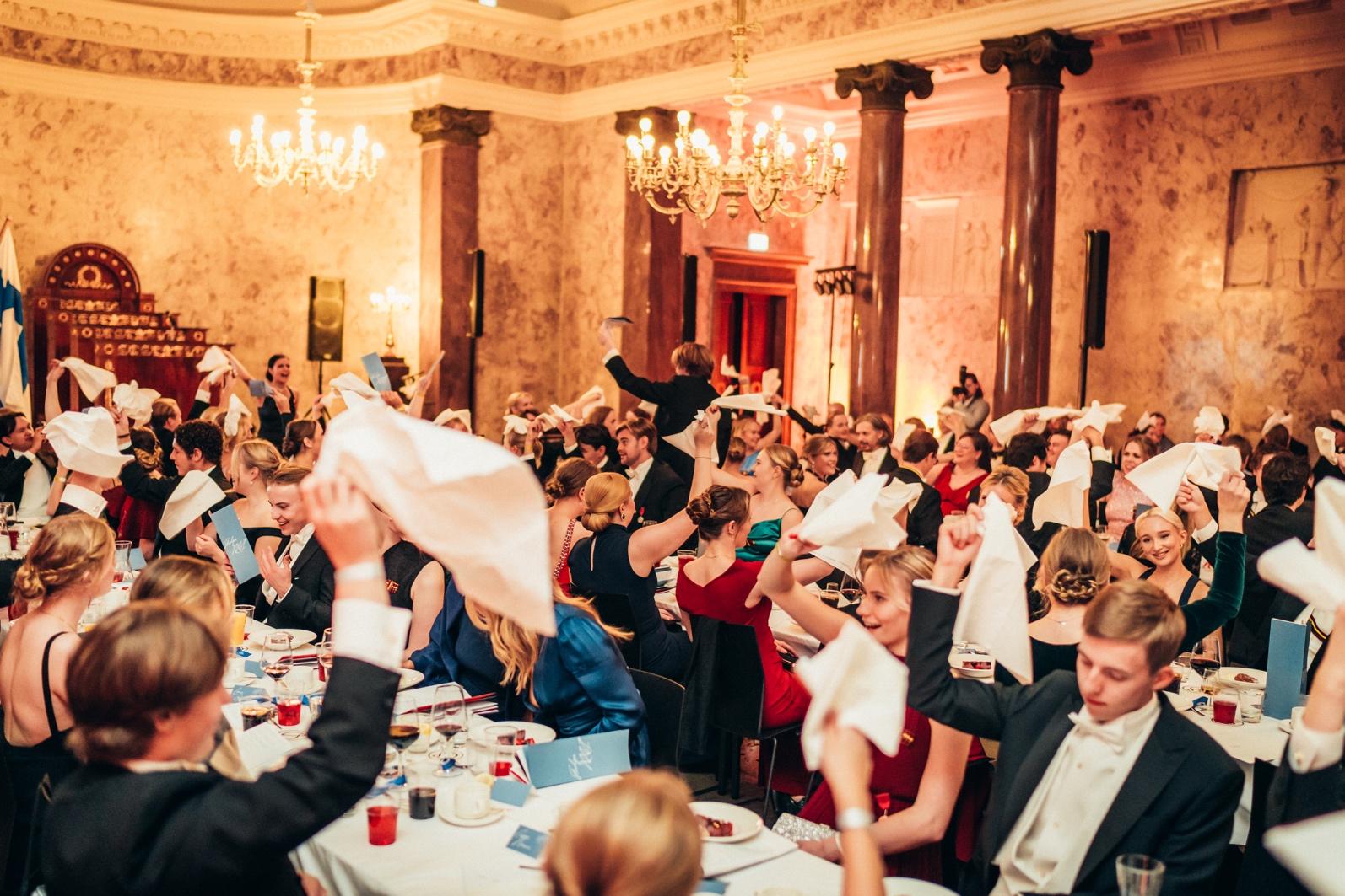 Från första början stod det klart att årsfesten skulle bli något enastående. Akademihuset fylldes med ens av skratt och glada röster när stadgeiter i alla åldrar forsade genom dörrarna till den historiska festsal vi lyckats boka för Stadgas årsfest. Det var roligt att se så många stadgeiter komma på plats redan under solenn akten även om de inte skulle framföra någon hälsning. Någon påpekade att det kunde bero på skumpan som serverades där, för vad är nu ett bättre sätt att börja årsfestfirandet med om inte ett glas bubblande eller två. Stämningen var på topp redan nu och den skulle bara bli bättre ju längre kvällen gick. Snart knackade marskalkarna i stengolvet med staven och förkunnade att banketten var serverad. Medan gästerna tog sig till sina
