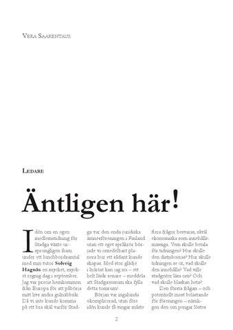 dén om en egen medlemstidning för Stadga växte ursprungligen fram under ett lunchbordsamtal med min tutor Solveig Hagnäs en mycket, mycket regnig dag i september. Jag var precis hemkommen från Europa för att påbörja mitt livs andra gulnäbbsår. Då vi inte kunde komma på ett bra skäl varför Stad-