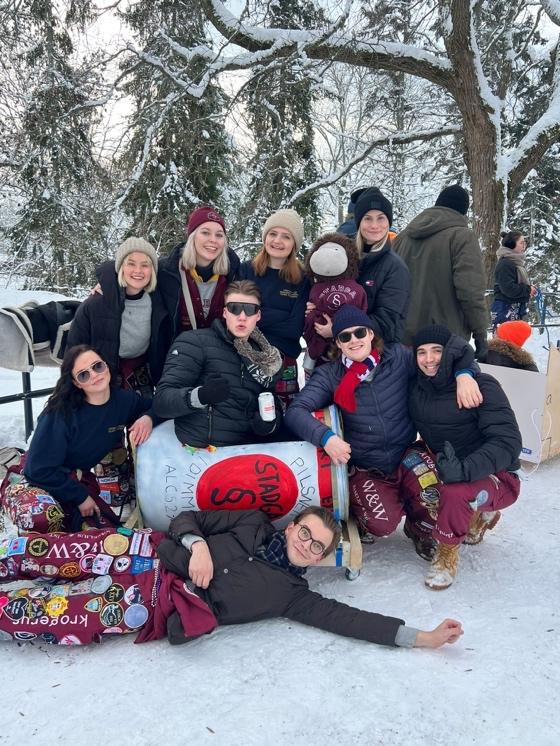 Efter att det 11:te utförande var färdigt hoppade Casper Tolppanen ner i pulkkan och förberedde sig för take-off. När vi hörde sången skuffade vi pulkkan ner med raserfart och tur som fan hölls tunnan på plats, annars skulle det nog har varit -1 gulis. Men bra gick det och jag hoppas att alla andra projekt går lika smidigt. Ett stort tack till projektkommittén och alla andra Stadgeiter som var med på vårdberget!