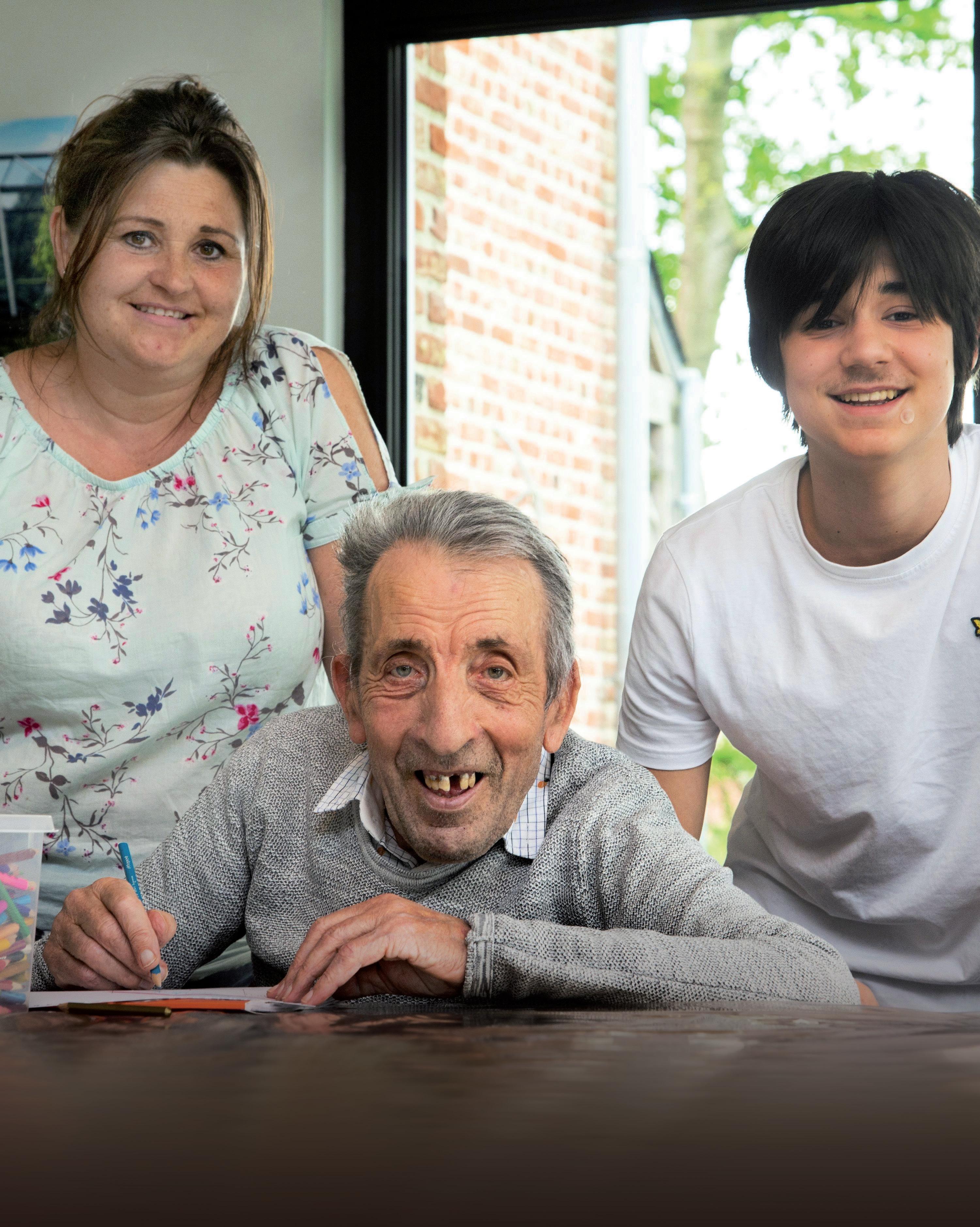 Ann, haar zoon Warre en Robert (midden) krijgen terecht een plaats op de cover van deze extra InfoGeel. Ann Peetermans vangt al vijf jaar met veel zorg psychiatrische patiënten op.