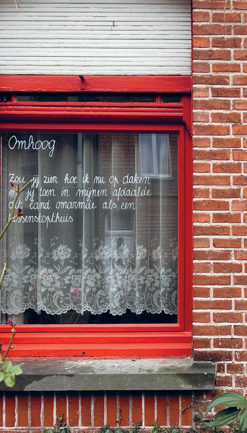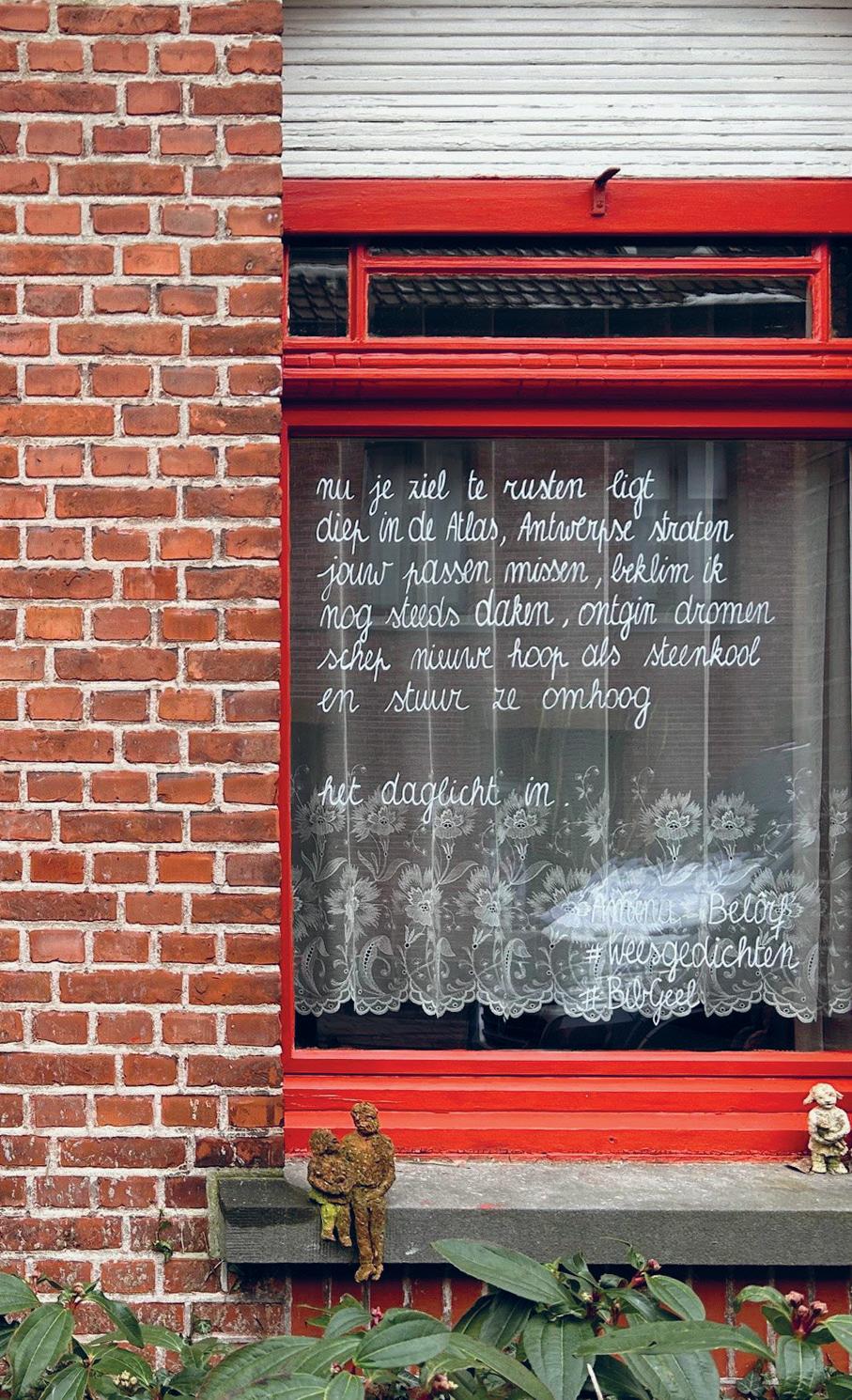 Vrijwilligers schrijven het op je raam met afwasbare stiften. Kies een weesgedicht en geef je buurt een warme, poëtische uitstraling!
