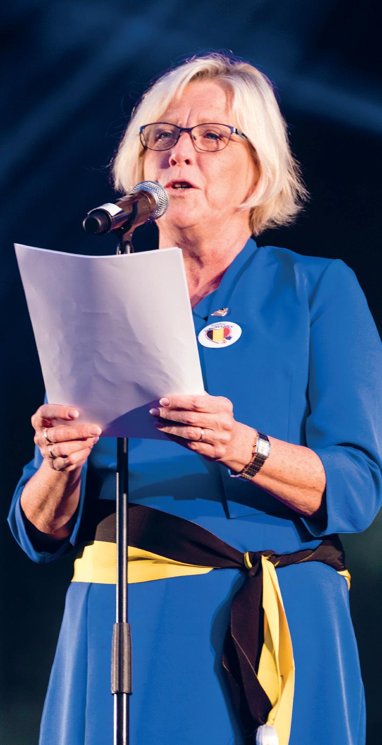 “Tijdens GheelaMania was ze niet enkel het aanspreekpunt, maar het kloppend hart. In de kelder, tussen stapels stof, naaimachines en kledij was ze de koningin van het naaiatelier. Ze kende elk kostuum, elke draad, elke knoop – en elk sterk verhaal dat ermee gepaard ging. Als er iets misliep, kon je rekenen op haar humor: ‘Zal wel goe komen, ’t is maar een draadje!’ En het kwam ook altijd goed, dankzij haar. Ze hield de boel daar draaiende met een glimlach en een kwinkslag.