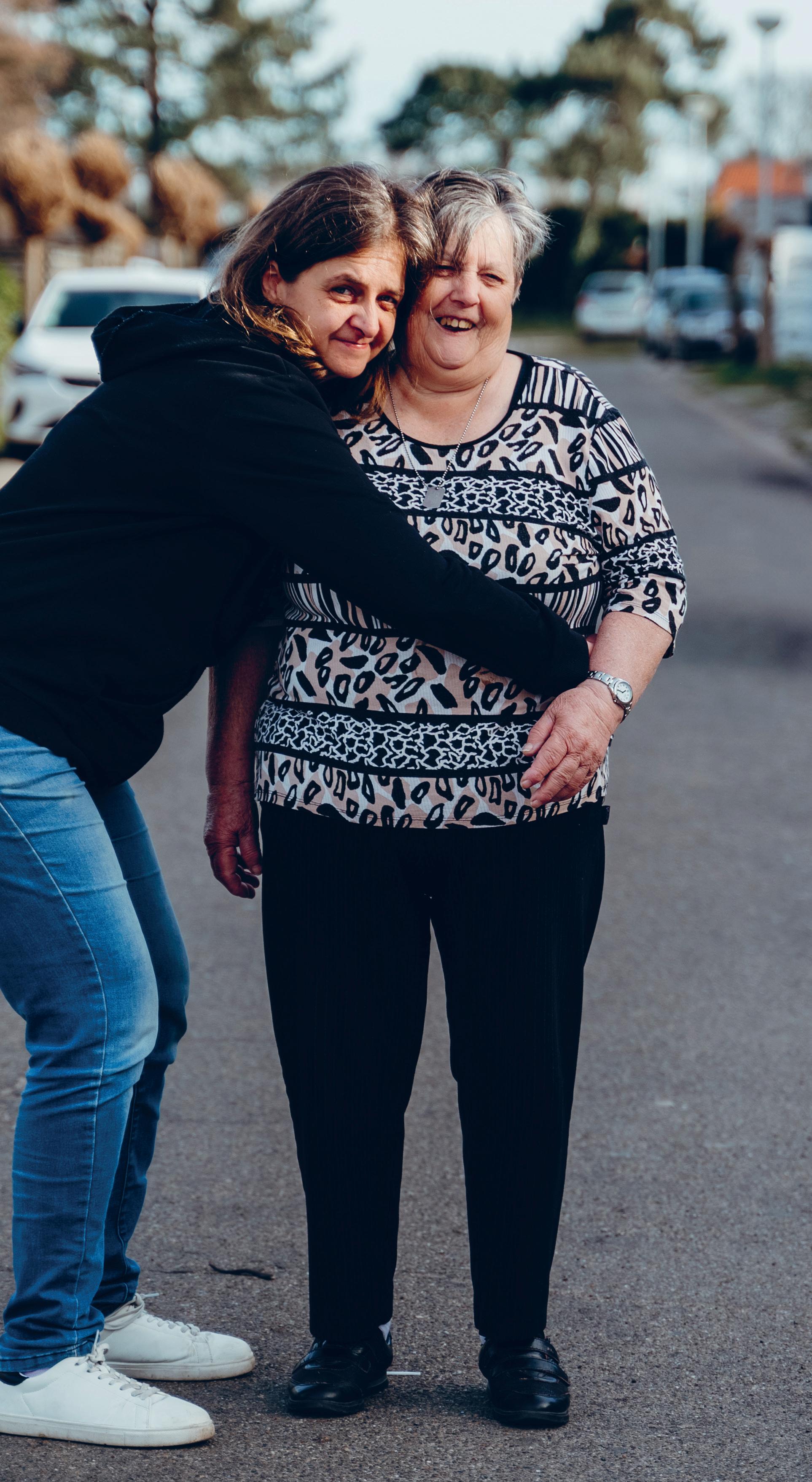 “Mijn dochter Sarah helpt Rita met haar gsm en krijgt dan vaak een chocoladebroodje als bedankje”, lacht Wendy. “We zien elkaar bijna elke dag en doen veel samen, zo gaan we naar de creaclub van Samana of het buurtcafé.”