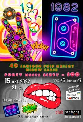 Dit jaar besloten de 40- en 60-jarigen de krachten te bundelen. De voorverkoop startte tijdens de avondmarkt met een heuse dartsen jeneverstand. Op zaterdag 15 oktober vierden ‘de klas van 1982’ en ‘de klas van 1962’ hun nieuwe voordeuren met een receptie en een BBQ bij Tante Julia. De feestelijke dag werd afgesloten met een zeer geslaagde fuif in zaal Steborg. Tot in de vroege uurtjes werd er gedanst door de naar schatting 350 aanwezigen. KSA droeg zijn steentje bij: een aantal leden werkten in de hotdogtent, anderen hielpen bij de bediening in de zaal. Als dank kregen ze een deel van de opbrengst van de fuif, de rest werd geschonken aan Stevoort Solidair. Na de fuif was het nog even hard werken om de zaal terug spic en span te krijgen, want op zondagmiddag was er al een babyborrel. In Stevoort valt er altijd iets te vieren!