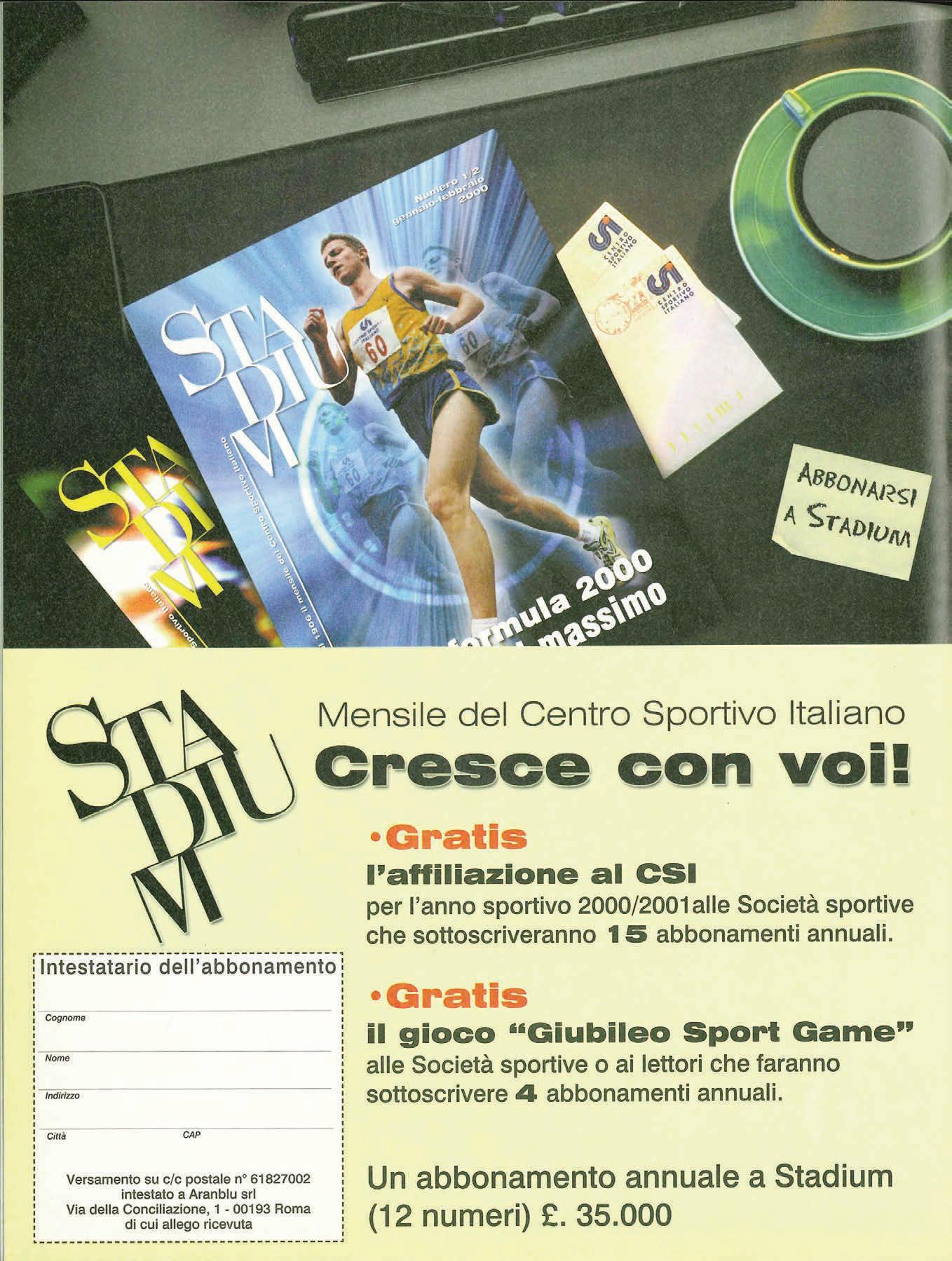 Il 2000 che si chiude è stato un anno importante per il Centro Sportivo Italiano. E' stato un anno vincente. E non solo per la mole di attività svolta ma
