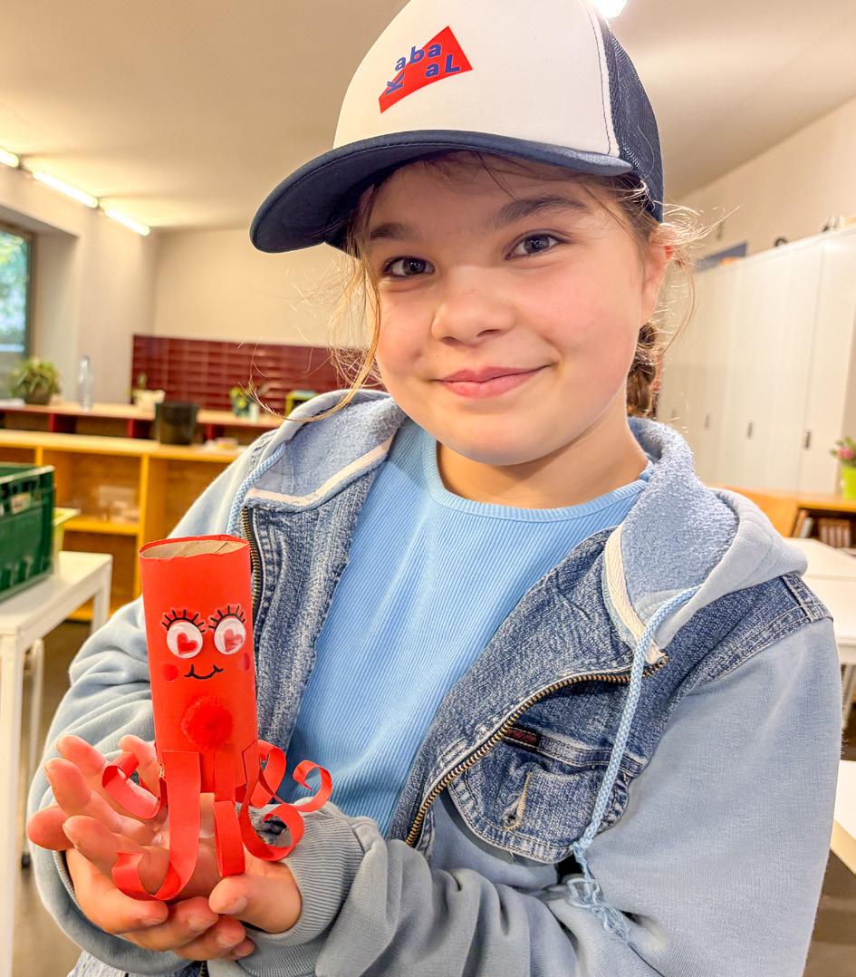 “Wij hebben een schoolhond. Je leest er alles over op pagina 6. Oh ja, op pagina 10 knutselden wij dieren uit wc-rolletjes.”