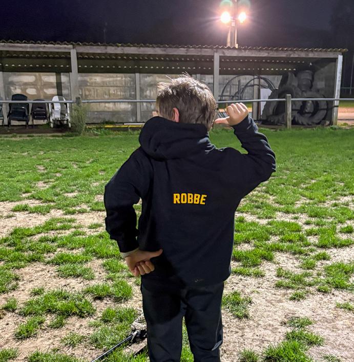 Het is een donkere, koude dinsdagavond. Robbe toont ons enthousiast een groot grasveld, verlicht door witte lampen. “Hier speel ik al twee jaar. Bij lacrosse heb je stick zoals bij hockey. Aan onze stick zit een netje en daarmee vang je ballen. Je geeft passen aan elkaar en probeert te scoren!”