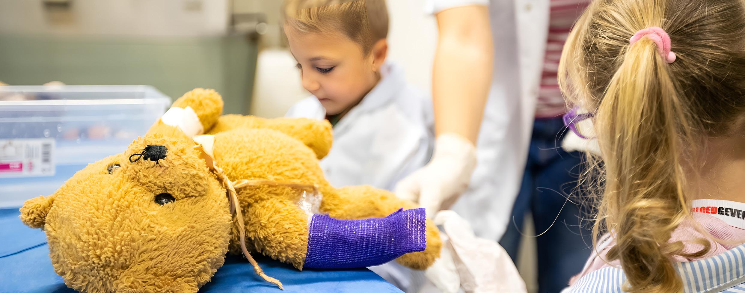 In het Teddy Bear Hospital op campus Gasthuisberg maken kinderen spelenderwijs kennis met wat er zich zoal in een ziekenhuis afspeelt. Ze nemen een eigen zieke knuffel mee, die ze weer beter maken. De beer onderzoeken, een pleister plakken, een verband aanbrengen, een poot in het gips leggen, en dat allemaal in dokterskleding en met het juiste materiaal. Leuk en leerrijk!