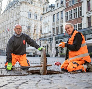 We komen aan op de Grote Markt. Kris heft een riooldeksel op. Een warme damp dringt onze neus binnen. Geknield en met zijn hoofd over de put controleert Xavier de gifblokjes die hij er de week voordien heeft gelegd. ‘Ze zijn er nog. Dat is goed nieuws: we vermoeden dat er geen ratten meer door deze pijp zijn gelopen.’