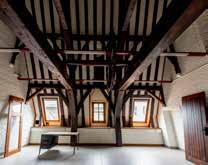 De zolder van het Achterhuis heeft een 15de-eeuws dakgebinte, met een origineel hijsrad, waarmee ze vroeger spullen naar de zolder konden hijsen. De hedendaagse inkleding met panelen, vloertegels en geverfde muren verbergt dat oorspronkelijke uitzicht. We verwijderen die afwerking en restaureren het oude dakgebinte zodat het opnieuw mooi zichtbaar wordt.