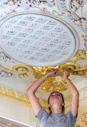‘We hebben heel veel elementen onderzocht. Daarvoor bestudeerden we niet alleen de archieven, maar ook de bouwarcheologie, de bouwsporen van verschillende eeuwen, de materialen, kleuren en afwerkingslagen ... In de traphal hebben we bijvoorbeeld kleine vensters gemaakt in de bepleistering, om te zien welke materialen en afwerkingslagen eronder verscholen zaten.’