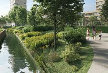 verkoeling door grote bomen en groene vlakken in een straat te plaatsen