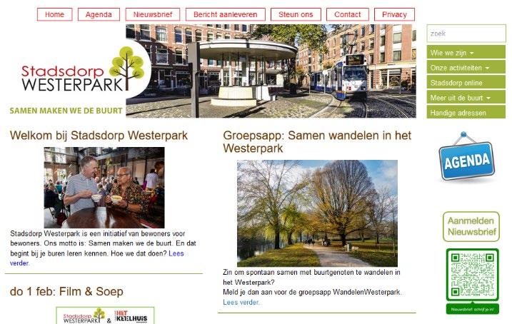 In de nieuwsbrief en op de website gaven we bekendheid aan meerdere buurtactiviteiten en organisaties. Denk daarbij aan Kerk & Buurt, De Tuinen van Westerpark, de buurtactiviteiten in buurtkamer De Nieuwe Reiger en het 4 & 5 mei Comité Westerpark