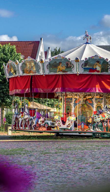Jever is considered as a city of art, legend and history. At the old mar ket the different bronze figures of the “fountain of legends” represent the myths and legends of the Land of Jever. Each figure has its own unusual story. In the town church you will find the memorial in me mory of Edo Wiemken. It is considered an important example of Dutch Renaissance art. The blueprinter Sabrina Schuhmacher stuns the vi sitors with her craft and blue paints. With over 500 old stamps, she creates beautiful designs on fabrics. The fire department museum of fers an extensive collection of old work clothes and typical necessities like suction baskets, fire engines, turntable ladders and respiratory protection.