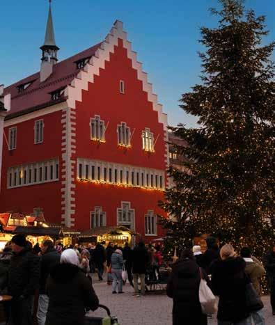 Ab dem 29. November durchdringt wieder ein herrlicher Duft von frisch gebrannten Mandeln und heißem Punsch die historischen Gebäude der Ravensburger Innenstadt. Rund ums Rathaus, zwischen unzähligen Tannenbäumen und winterlichen Holzfiguren wird der traditionelle Ravensburger Christkindlesmarkt zu einem Treffpunkt für Klein und Groß. Besucher können täglich von 11 bis 20 Uhr durch die liebevoll geschmückten Holzbuden schlendern und von Hand gefertigtes Kunsthandwerk, das perfekte Weihnachtsgeschenk für Freunde und Familie sowie leckere kulinarische Köstlichkeiten entdecken. In diesem Jahr hat der Markt donnerstags bis samstags bis 21 Uhr geöffnet, somit können Besucher länger in der festlichen Atmosphäre verweilen und bei einem heißen Punsch die winterliche Stimmung genießen. Umrahmt wird der Markt mit musikalischen Darbietungen verschiedener Künstler, die mit bekannten Melodien und Klängen Weihnachtsstimmung in die Altstadt bringen und die Vorfreude auf das Fest der Liebe steigern. Auch für die kleinen Gäste ist viel geboten, Schafe streicheln oder dem größten Adventskalender Oberschwabens in der Bachstraße lauschen – auf dem Christkindlesmarkt werden Wünsche schon vor Weihnachten wahr. Wie im letzten Jahr öffnet die Stadtwerkstatt für Kinder im Alter von 6 bis 10 Jahren seine Türen. Am 30. November, 7. und 14. Dezember können Kinder von 12 bis 16 Uhr dort ihr handwerkliches Geschick beweisen.