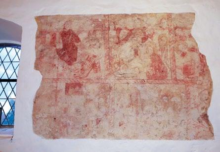 Die meisten Menschen im frühen Mittelalter konnten nicht lesen und schreiben. So wurden zum besseren Verständnis Bibelpassagen auf die Kirchenwände gemalt. Eine Seitenwand in der Wollenhagener Kirche zeigt die Geschichte von Jesus von der Geburt bis zur Auferstehung in Bildern.