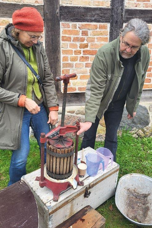(SJ) Es war ein echt schlechtes Apfeljahr, sagten Almut Joswig und Andreas Wolf von der mobilen Mosterei – Apfelkönig von der Joswig & Wolf GbR aus Apenburg. Am 3. Oktober hatten sie ihre mobile Mosterei auf dem Gutshof Lindstedt aufgebaut. Wobei es regional recht unterschiedlich war fasste Almut Joswig zusammen, waren in Niedersachsen die Erträge recht gut sah es in Sachsen-Anhalt ganz anders aus, hier gab es bis zu 90 % Ernteausfälle durch die Frosttage im Frühjahr. AB 11.00 Uhr standen die ersten Einwohner bereit wie Lindstedter Ronny Böhm erzählte. Er und andere Mitglieder vom