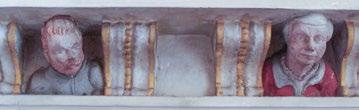 Denn die Köpfe beider Eheleute schauen vom Epitaph der 1586 verstorbenen Anna Hackelbusch als „Wächterköpfe“ auf ihre Nachfahren. Und in der Portallaibung sehen wir Antonius Uden im Büßergewand vor der Ehernen Schlange.