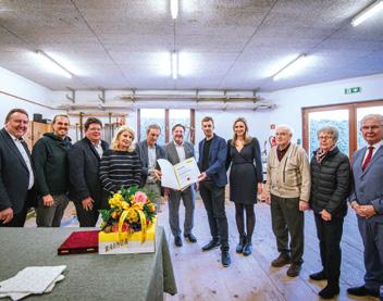 Im Zuge der Eröffnung am neuen Standort in der Kärntner Straße 35 fand gleichzeitig auch die feierliche Verleihung des Villacher Stadtwappens an die VMSG Versicherungsmakler GmbH mit Geschäftsführer Gerd J. Schatzmayr statt. Der Ursprung des bekannten Unternehmens geht auf Klaus Warum zurück, der die Versicherungskanzlei 1988 gegründet hat. Nun arbeiten dort sechs Mitarbeiter:innen. Urkunde mit Siegel und Wappen überbrachten ihnen Bürgermeister Günther Albel und Stadtrat Erwin Baumann.