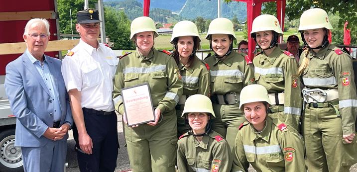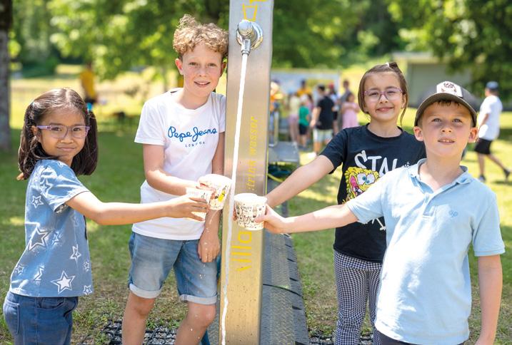 TRINKWASSERTAG. Trotz des hochsommerlichen Wetters konnten Stadtrat Erwin Baumann und das engagierte Team des Wasserwerks unter der Leitung von Peter Weiß viele interessierte Besucherinnen aller Altersgruppen beim Trinkwassertag am Hochbehälter auf der Oberen Fellach begrüßen und informieren. Der Naturpark Dobratsch, die Feuerwehr und das Wassermobil waren einige der Stationen, an denen sich die Besucher:innen informierten. Auch mehr als 400 Schulkinder erfuhren viel Wissenswertes über das Villacher Trinkwasser und dessen Schutz und hatten viel Spaß in Wettbewerben.