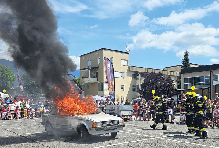 SICHERHEITSTAG. Beim Sicherheitstag auf dem Gelände der Hauptfeuerwehrwache Villach in der Kasernengasse, wurde den Besucher:innen wieder ein spannendes Programm der verschiedenen Blaulichtorganisationen geboten. Spektakuläre Übungen, wie das Löschen eines Fahrzeugs oder eine Seilbergung durch den Notarzthubschrauber RK1, waren die Highlights des Tages. Dazu gab es eine Fahrzeug- und Geräteschau sowie Tipps und Informationen für die eigene Sicherheit und Vorsorge. Bei den Vorführungen dabei waren auch die Stadträte Harald Sobe und Erwin Baumann.