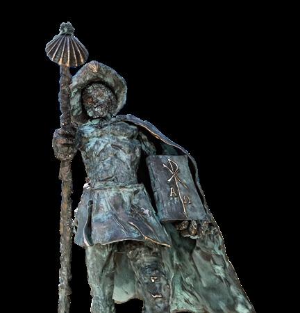 Eine überlebensgroße Statue des Heiligen Jakobus, Schutzpatron der Stadtpfarrkirche, bereichert seit Ende Juli den Skulpturenweg in der Villacher Innenstadt. Neben Adler, Trachtenpärchen, Bierbrauer und einigen mehr blickt Jakobus nun von seinem Platz über dem Rautterbrunnen über den Hauptplatz. Impulsgeber für die Figur war Stadthauptpfarrer Richard Pirker (kleines Foto rechts), entworfen hat die Figur Goldschmiedemeister Adolf Pobaschnig Girardi (kleines Foto links). Die Stadt Villach beteiligte sich an der Finanzierung des Projektes.